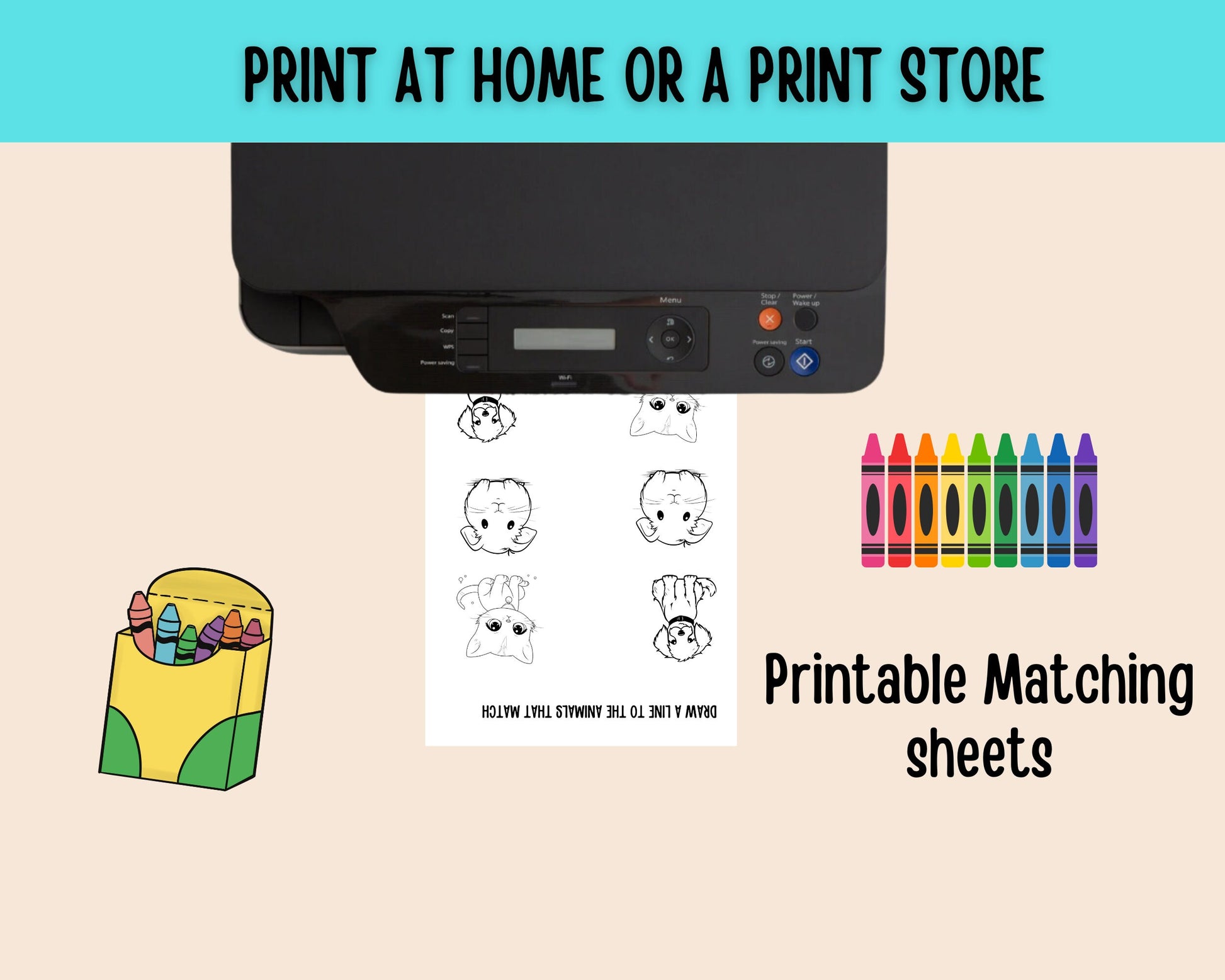 3 printable matching game sheets. Kids can color the animals and draw a line from the animals that match